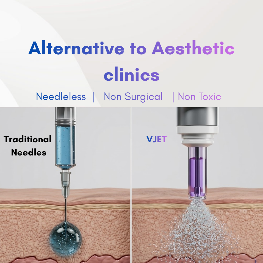 Your health is our priority. Our pneumatic V-Jet technology eliminates needles, ensuring a safer experience with zero risk of deep tissue trauma.